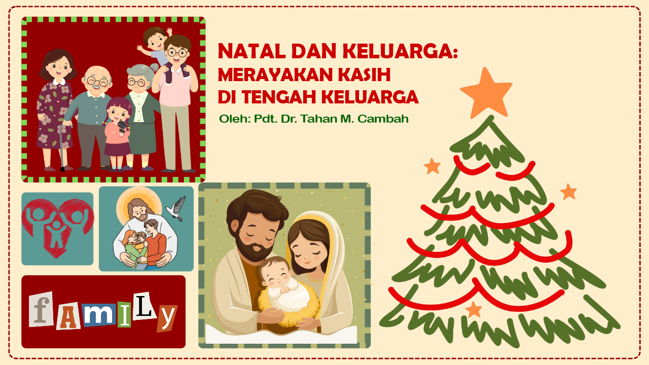 Tema perenungan masa Raya Natal yang disampaikan oleh PGI (Persekutuan Gereja-gereja di Indonesia tahun 2025 adalah “Allah Hadir untuk Menyelamatkan Keluarga”. Tema ini diambil dari Matius 1:21-24. PGI meyakini bahwa keluarga pada masa kini mengalami berbagai tantangan yang tidak mudah. Ada masalah ekonomi, judi online, pinjaman online, narkoba, individualisme dan materialisme. PGI menganjurkan agar keluarga suami istri dan anggota lainnya berperan untuk kembali menjadi Gereja terkecil, tempat kasih Kristus pertama-tama dihidupi.[2] Pesan tersebut sangat menggugah dan membuat gereja-gereja bergegas untuk memaknai Pesan Natal tahun 2025 dengan berbagai perayaan.